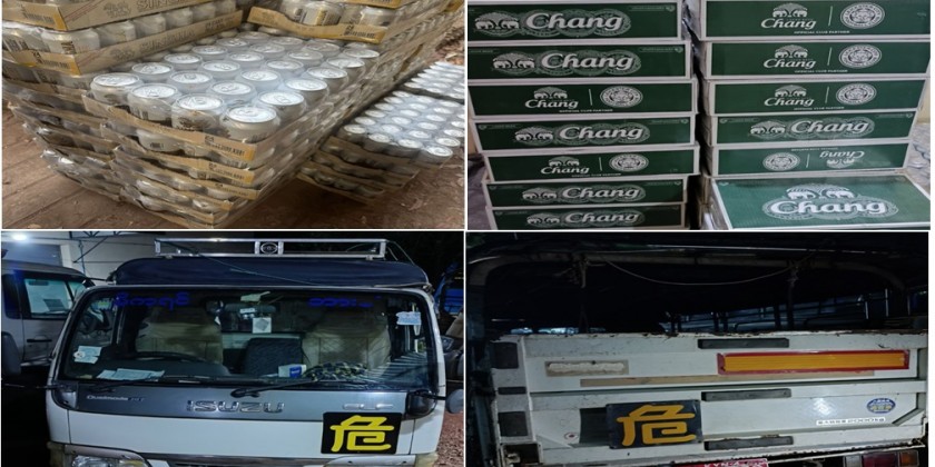 On 21 April, two kinds of goods (including 65 cartons of Chang beer) from a vehicle were nabbed at the Thanlwin Bridge combined checkpoint. Six kinds of goods (including foodstuffs and consumer goods) were captured at the Yadanabon combined checkpoint in Sagaing Township.