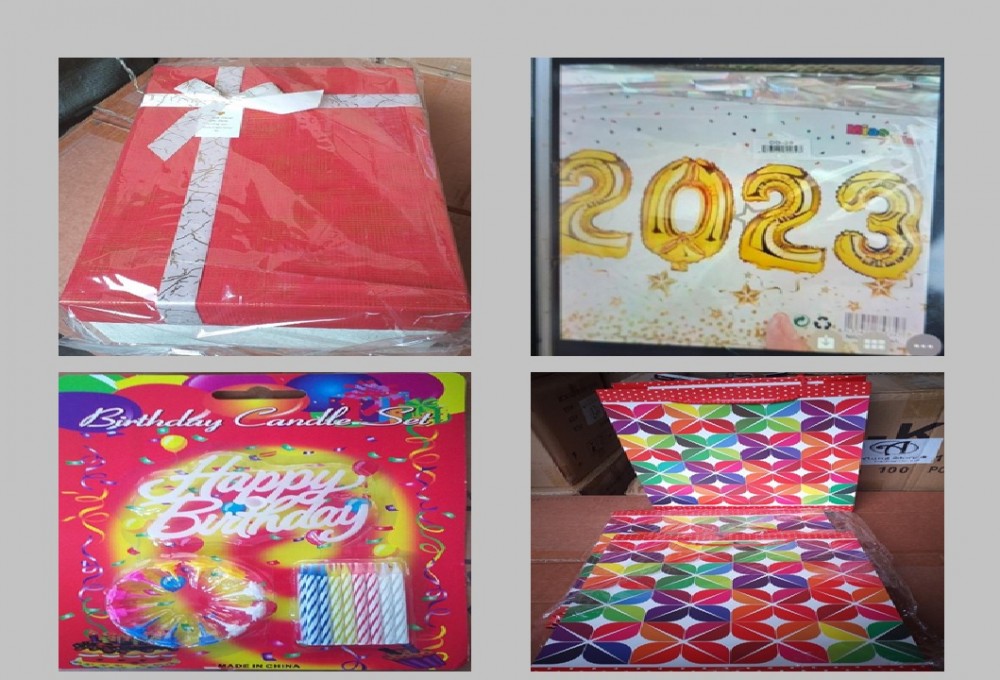On 16 February, an on-duty Customs team captured three kinds of goods including 2826 kilogrammes of 30 cm long Party Popper that exceeded the Import Declaration (ID) from a container at the Asia World container checkpoint and the two kinds of goods including 170 kilogrammes of Cake Topper that were not declared in the Import Declaration (ID).