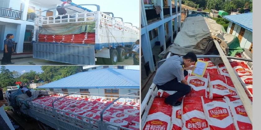 Similarly, combined inspection teams nabbed 28,500 kilogrammes of monosodium glutamate branded EPPEN and a vehicle with a trailer carrying that monosodium glutamate on the Myawady-Yangon road. A combined team led by region Forest Department seized 10.80 tonnes of illegal timbers.