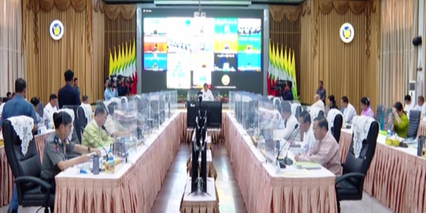 Vice Chairman of the State Administration Council Deputy Prime Minister Vice Senior General Soe Win attended the work coordination meeting on Illegal Trade Eradication Steering Committee (3/2023) held at the meeting hall of the Ministry of Commerce in Nay Pyi Taw on 26th of May.