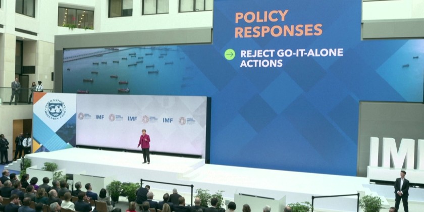 In a speech titled "Cushioning the Middle East War Shock," which marked the opening of the 2026 IMF Spring Meetings, Georgieva urged all countries to "reject go-it-alone actions, export controls, price controls, and so on" that can further disrupt global conditions.