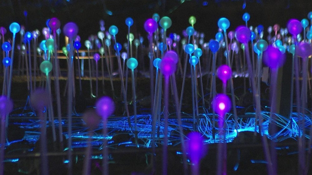 British artist Bruce Munro presents his large-scale art project "Field of Light" in New York, installed for one year.