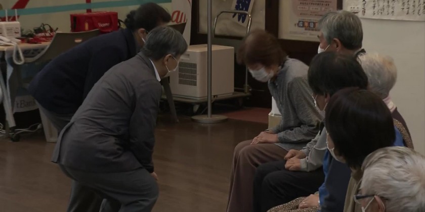 In the town’s Shiromaru district, the tsunami triggered by the quake flooded a wide area, damaged and sweeping away some houses. At evacuation centers in both Anamizu and Noto, the couple met with firefighters and healthcare officials who have been involved in the disaster response efforts, and thanked them for their work.