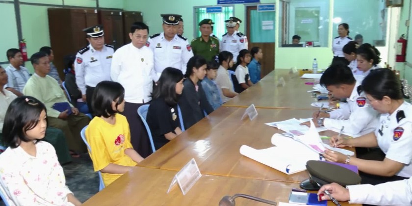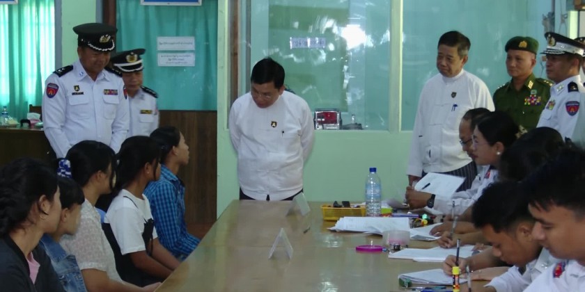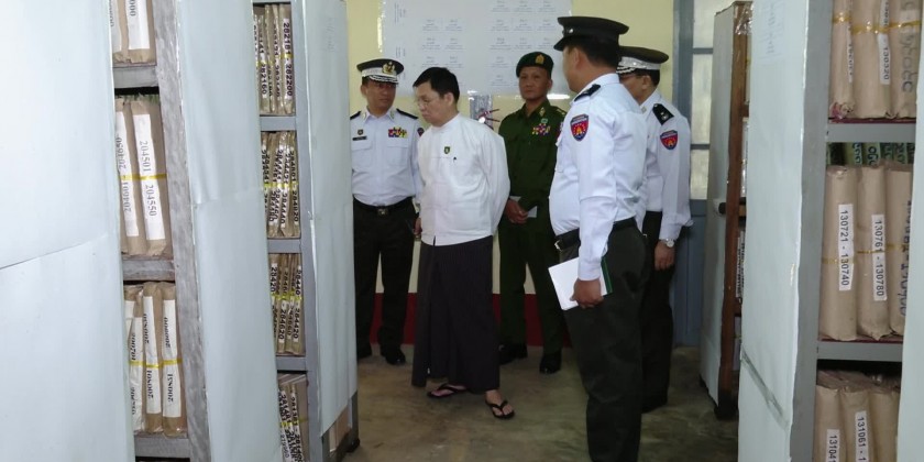 The Union Minister and party viewed the processes of inquiring by the Five members Committee of relevant Township, filling the individual personal data in the specific forms by the township office staff according to the Five members Committee and issuing Household Residence Registration Certificate and Citizenship Scrutiny Card and the Union Minister gave necessary instruction to carry out thorough scrutiny by verifying with the data in the e-ID Server.
