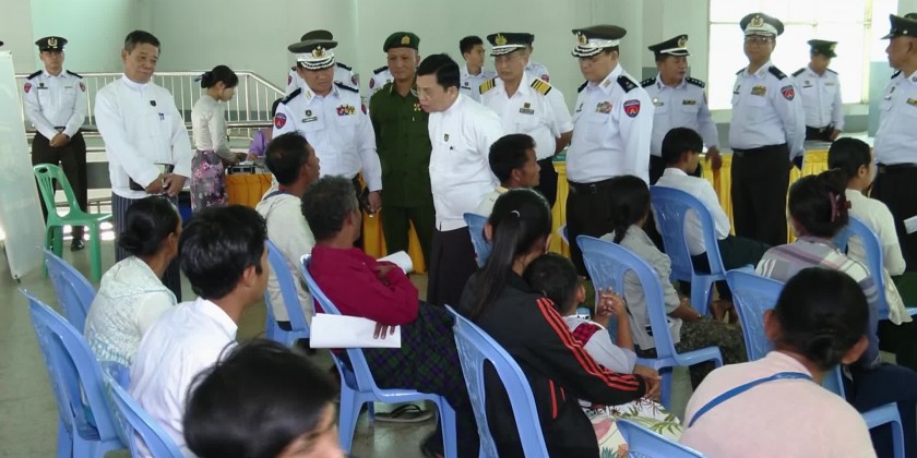 Union Minister Immigration and Population U Myint Kyaing together with the Deputy Minister U HtayHlaing and officials visited the hall, upstairs of Nay Pyi Taw Railway Station in Pobbathiri Township of Nay Pyi Taw Council Area and viewed the issuing Household Residence Registration Certificate and Citizenship Scrutiny Card under Pankhin Project phase (3) for the temporary displaced persons in Nay Pyi Taw Council Area in the morning on 7th March.