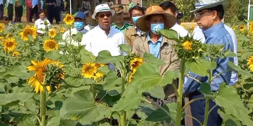 At the Thayet Lein village in Padaung township, the Chief Minister and party looked into thriving 50-acre mixed sunflower plantation and urged officials to carry out summer paddy cultivation with irrigation system.
