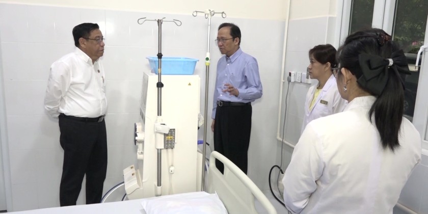 Union Minister for Health Dr. Thet Khaing Win attended the ceremony, and took part in the ceremonial ribbon cutting event. The Union Minister and attendees later observed the newly installed machine and Hemodialysis ward.