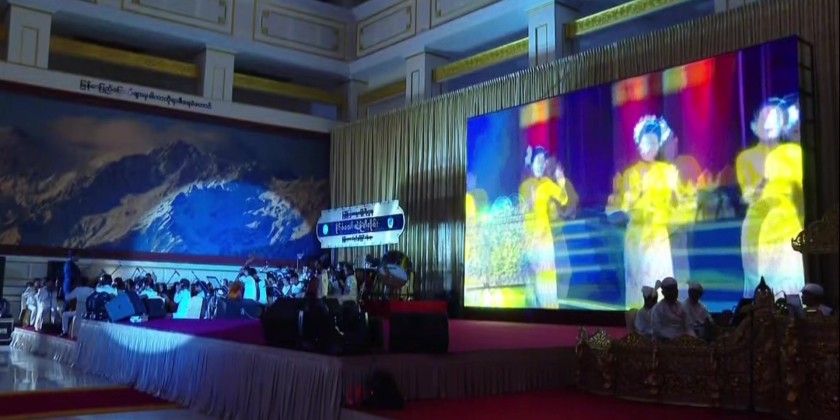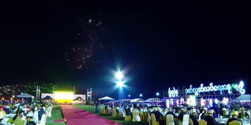 Prior to the reception, the Prime Minister and wife enjoyed the displays of fireworks together with the attendees. They then enjoyed the dinner and performances by artistes from the Myanma Radio and Television under the Ministry of Information and Find Arts Department under the Ministry of Religious Affairs and Culture.