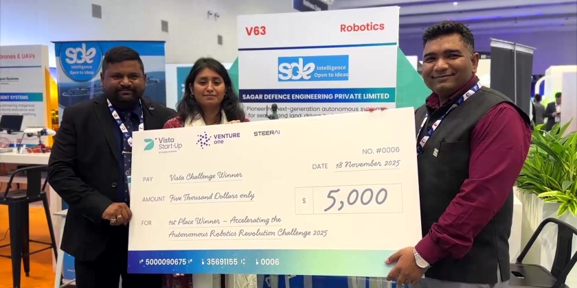 Sagar Defense, an Innovations for Defense Excellence (iDEX) winner from India, has secured the “Accelerating the Autonomous Robotics Revolution” challenge under the VISTA Track at Dubai Airshow 2025.