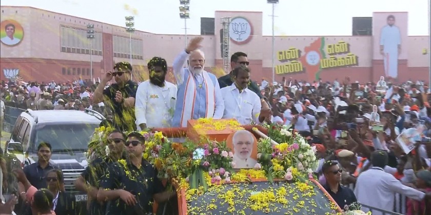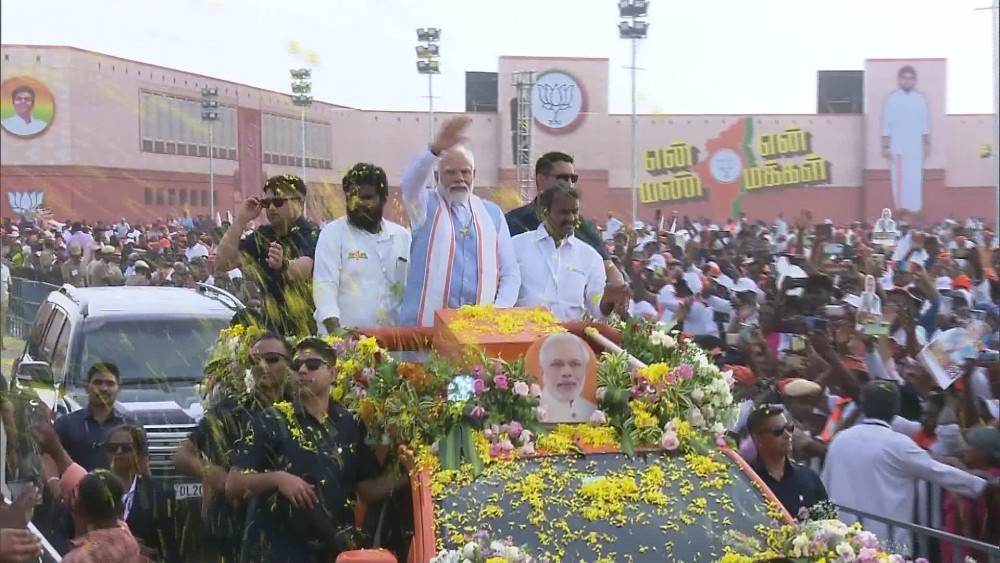India’s PM Narendra Modi arrived in Tamil Nadu after his visit to Kerala. He was welcomed by a large crowd gathered to greet him.
