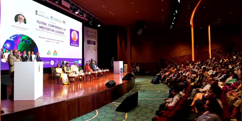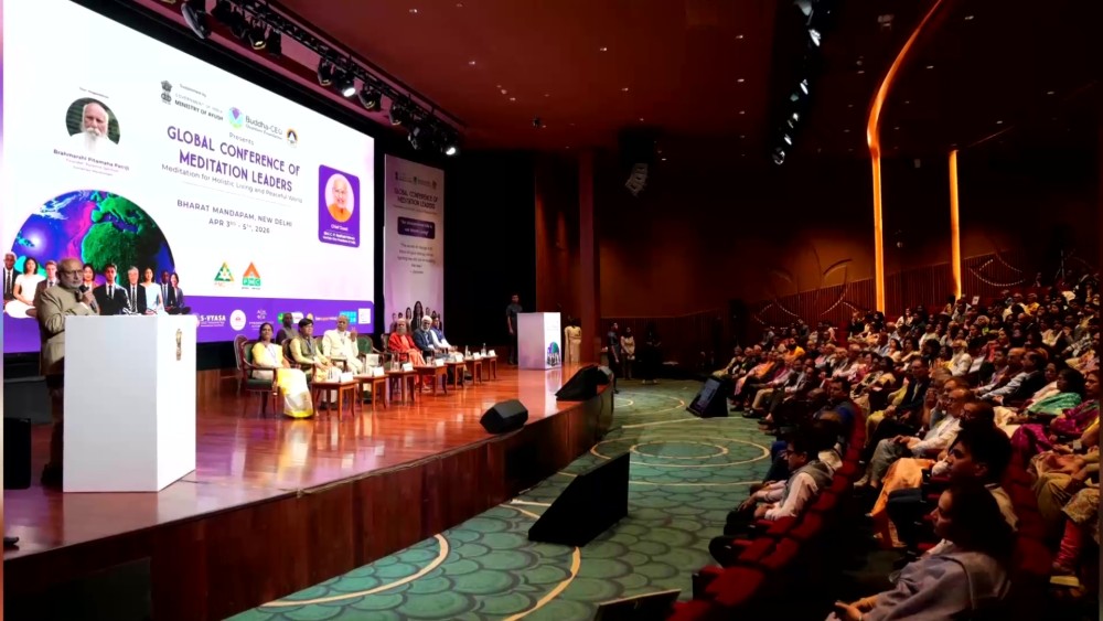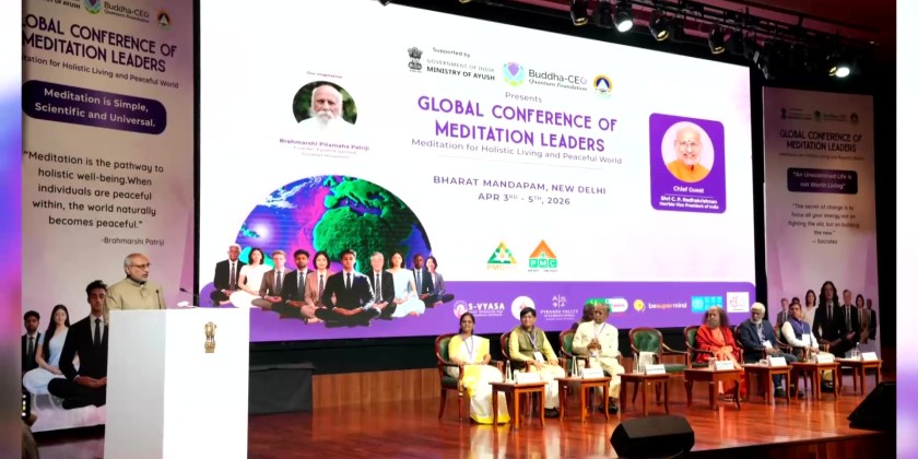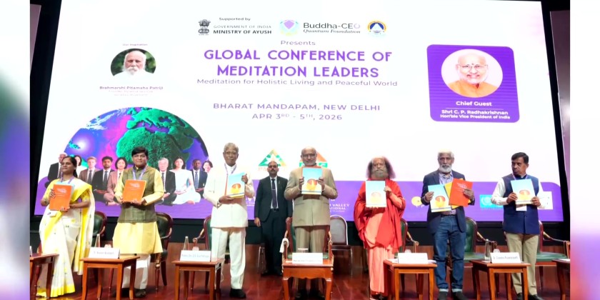 Vice President of India, C. P. Radhakrishnan graced the Global Conference of Meditation Leaders at Bharat Mandapam on Sunday, highlighting meditation as a path to inner peace, clarity, and a more harmonious world. Addressing the conference, the Vice President stated that “meditation is for everyone,” emphasising its importance in reducing stress, enhancing focus and building emotional resilience.