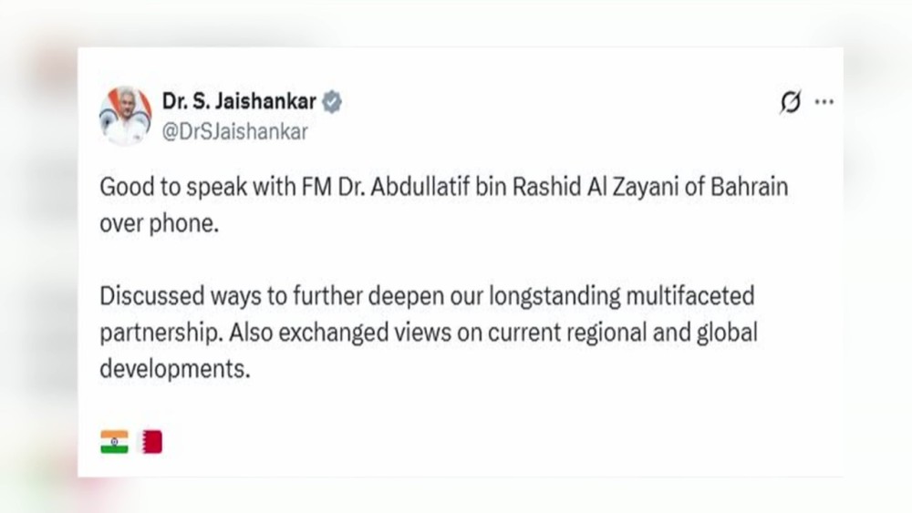 Indian External Affairs Minister Jaishankar held a phone conversation with Bahrain’s Foreign Minister Al Zayani. Both sides reaffirmed their commitment to strengthening their bilateral relationship.