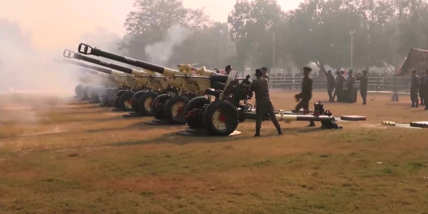 Indian President Droupadi Murmu presided over the celebrations at Kartavya Path in New Delhi on the occasion of 77th Republic Day of the nation on Monday. As per tradition, the national flag was unfurled by President Murmu, followed by the national anthem with a thunderous 21-gun salute using 105 mm light field guns, an indigenously developed artillery system.