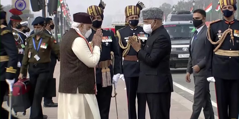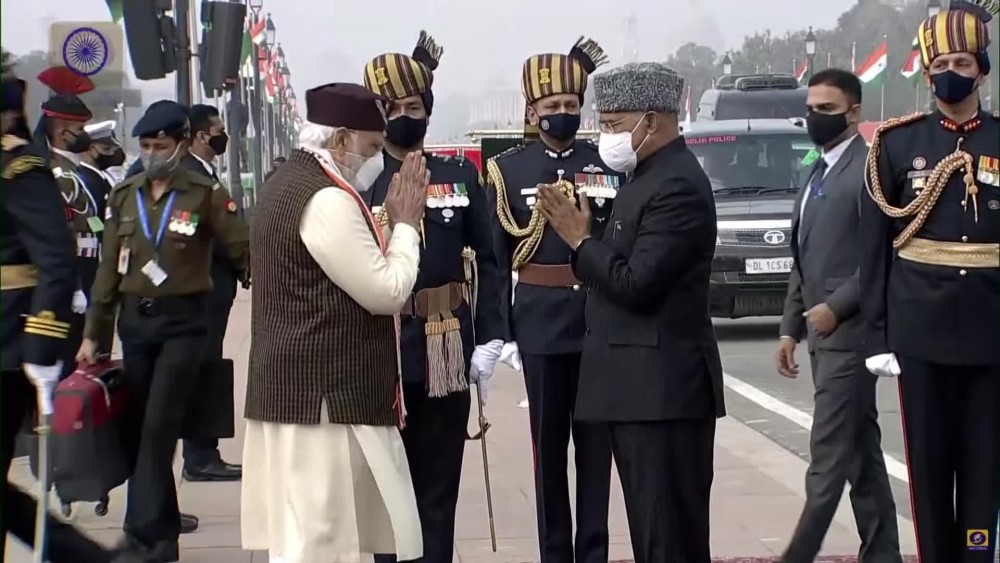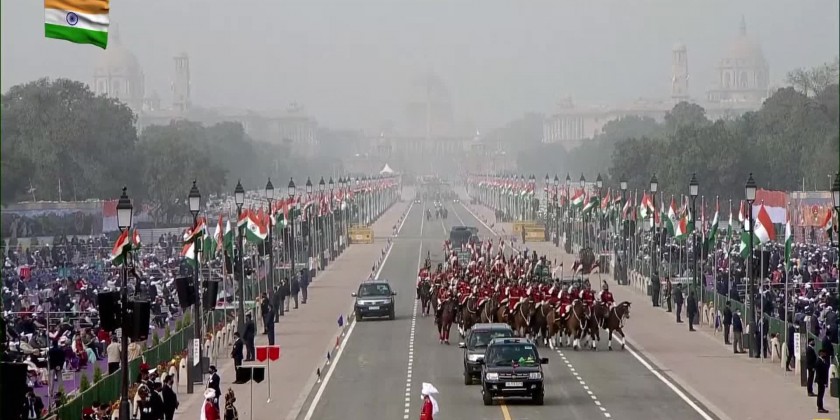 Nearly 500 schoolchildren, folk dancers, police and military battalions, floats and stunt performers on motorbikes paraded from the president's palace through the tree-lined refurbished boulevard of Rajpath. President Ram Nath Kovind took the salute from the marching columns, which also included a camel-mounted regiment with its mustachioed riders led by shiny brass bands with tubas. Republic Day marks the anniversary of the adoption of the country's constitution on January 26, 1950. India won independence from British colonial rule in 1947.