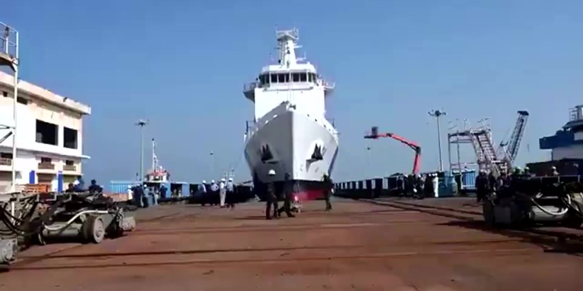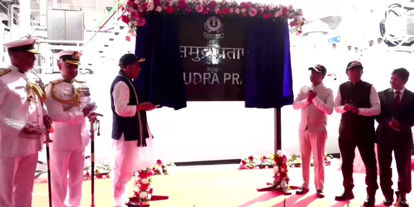 India’s Defence Minister Rajnath Singh commissioned Indian Coast Guard Ship (ICGS) Samudra Pratap on Monday, the first of two indigenously designed Pollution Control Vessels (PCVs) for the Indian Coast Guard (ICG), at Goa, India.