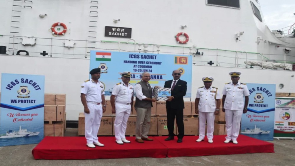 Indian Coast Guard’s Ship, Sachet visited Colombo to deliver spares valued at 1.2 million US Dollars to the Sri Lankan Coast Guard.