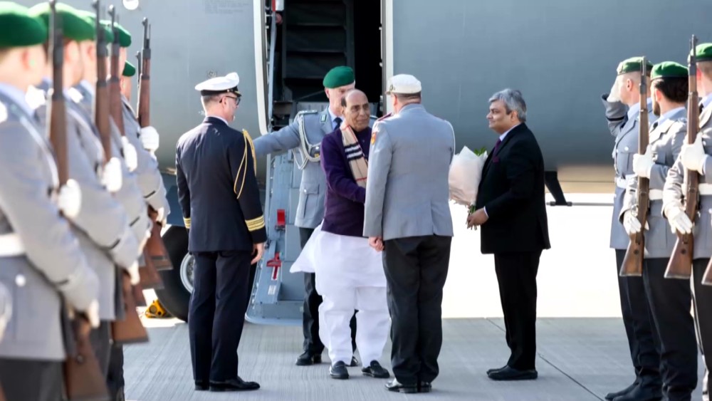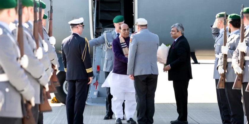 India’s Defence Minister Rajnath Singh on Tuesday arrived in Berlin on a three-day official visit aimed at deepening strategic defence cooperation between India and Germany.