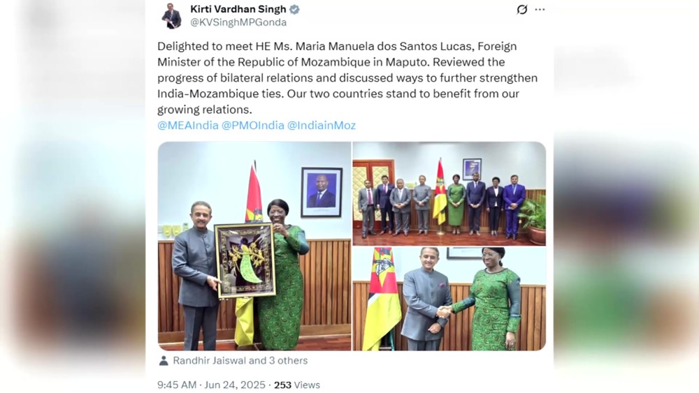 India' Minister of State for External Affairs Kirti Vardhan Singh met Maria Manuela dos Santos Lucas Foreign Minister of the Republic of Mozambique in Maputo.