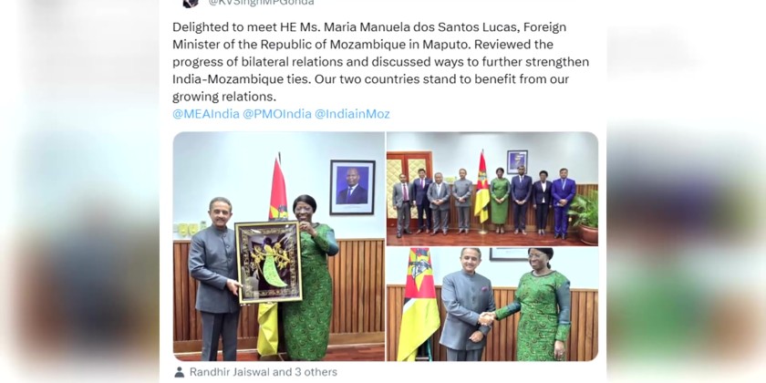 The two ministers discussed progress of bilateral relations and ways to further strengthen India-Mozambique ties. In recent years, India-Mozambique economic relations have steadily deepened and expanded mainly through greater involvement of Indian companies that have invested heavily in the energy resources of Mozambique.
