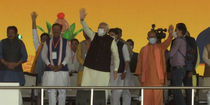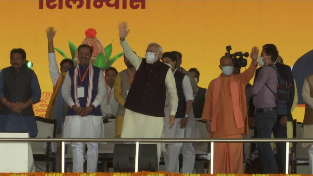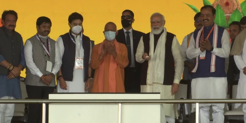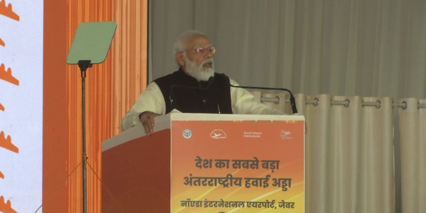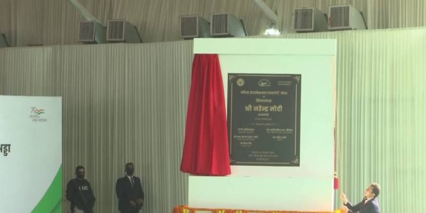 Indian Prime Minister Narendra Modi laid the foundation stone for the Noida International airport in Jewar, Uttar Pradesh on Thursday.