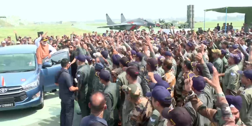 Indian Prime Minister Narendra Modi visited the Adampur Air Base in Punjab on Tuesday to meet brave air warriors and soldiers.