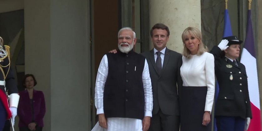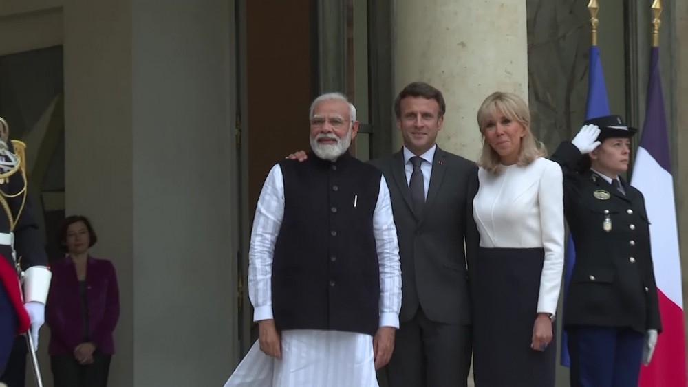 Indian Prime Minister Narendra Modi arrived in France after visiting Germany and Denmark on his European trip.He was welcomed at the Elysee Palace in Paris by the French President Emmanuel Macron and his wife.The French foreign, defense and finance ministers also attended the discussions that focused on the Ukrainian crisis and the challenges in the Indo-Pacific region.It was Modi's fifth visit to France since becoming Indian prime minister in 2014.