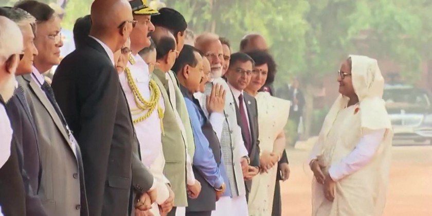 She also received a ceremonial reception at Rashtrapati Bhavan in the presence of Prime Minister Narendra Modi. Then, Prime Minister Hasina and Prime Minister Narendra Modi met with Ministers and delegates from both countries at the forecourt of Rashtrapati Bhavan.