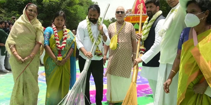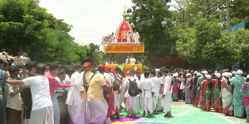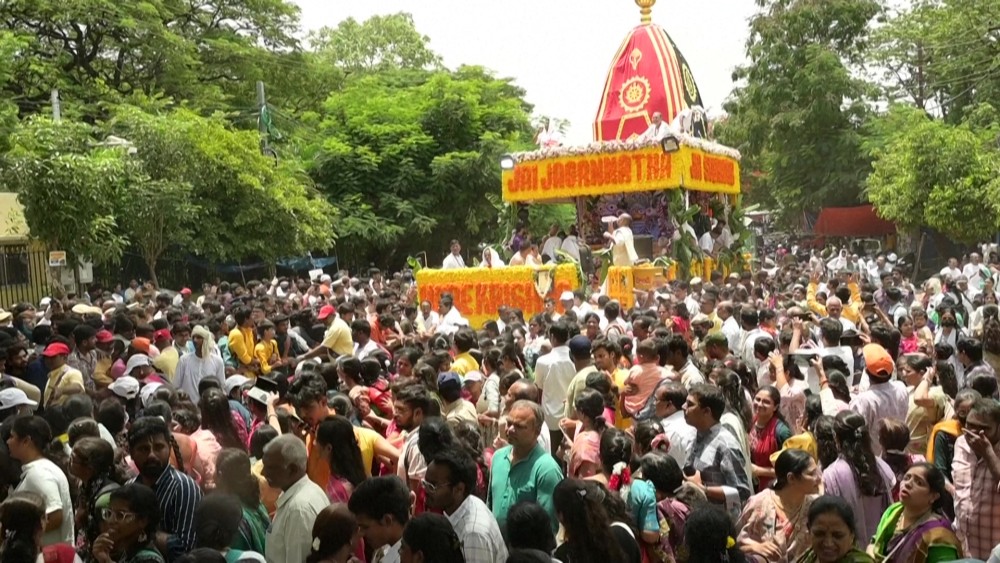 Thousands thronged the streets of India's Hyderabad for the annual Ratha Yatra Festival. The Hindu religious procession saw worshippers and members of the International Society for Krishna Consciousness sang devotional hymns as they pulled a brightly decorated chariot carrying an idol of Lord Jagannath.