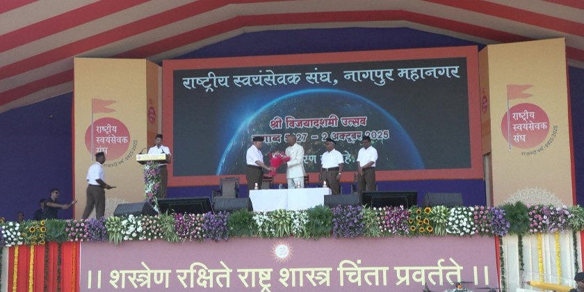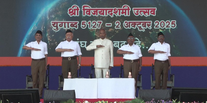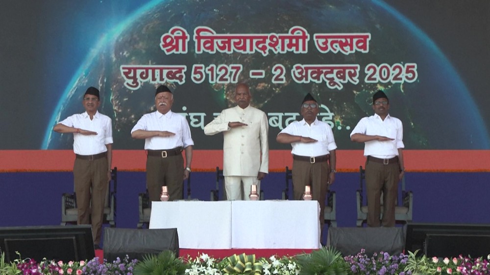 India's Hindu nationalist Rashtriya Swayamsevak Sangh (RSS) marked its centenary in Nagpur with a parade of thousands of stick-wielding volunteers in white shirts and brown trousers.