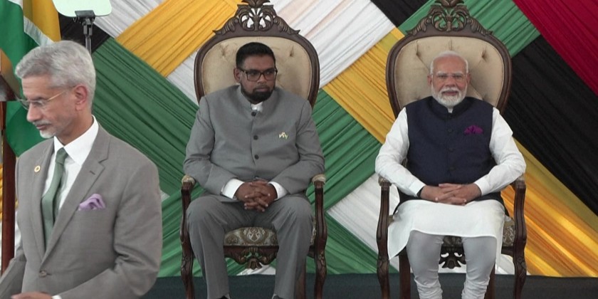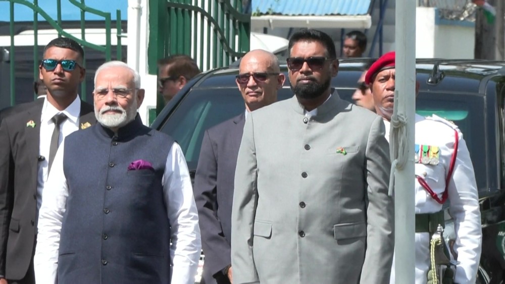 Indian Prime Minister Narendra Modi paid a state visit to the South American country of Guyana, where 40 percent of the population is of subcontinental origin. Modi signed cooperation agreements with President Irfaan Ali in the fields of agriculture, defense and hydrocarbons, the last of which the tiny nation possesses major reserves of.