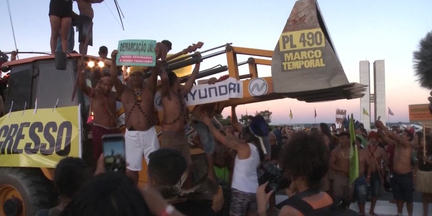Thousands of Indigenous people took the streets of the Brazilian capital, Brasilia, on Wednesday and marched toward the National Congress demanding the demarcation of Indigenous territories.