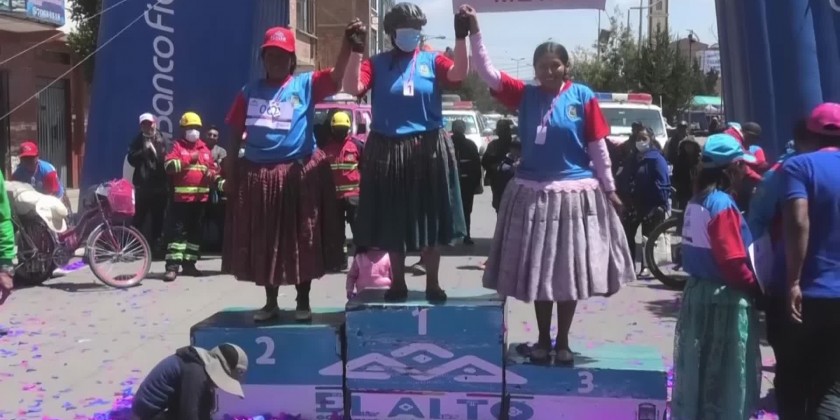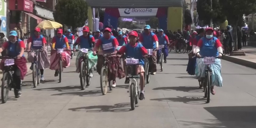 120 Aymara women between the ages of 14 and 50 cycled 8 kilometres on the plains of El Alto, neighbouring La Paz, to empower indigenous women and encourage sport.This event generates more and more interest from women every year, which motivates them to use bicycles.