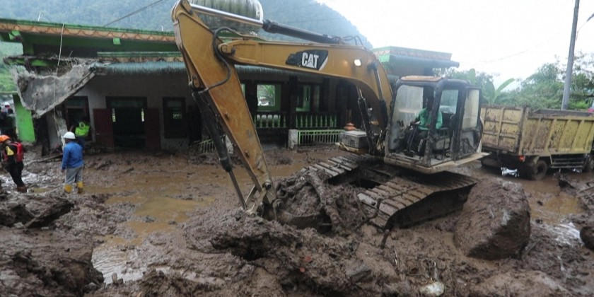 Rescue workers in western Indonesia used heavy equipment on Tuesday to dig out from weekend flooding and landslides that have killed at least 20 people, the national disaster agency said.