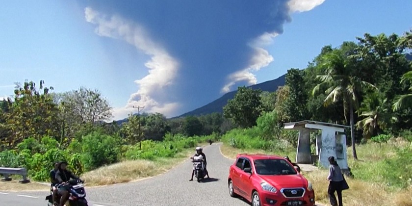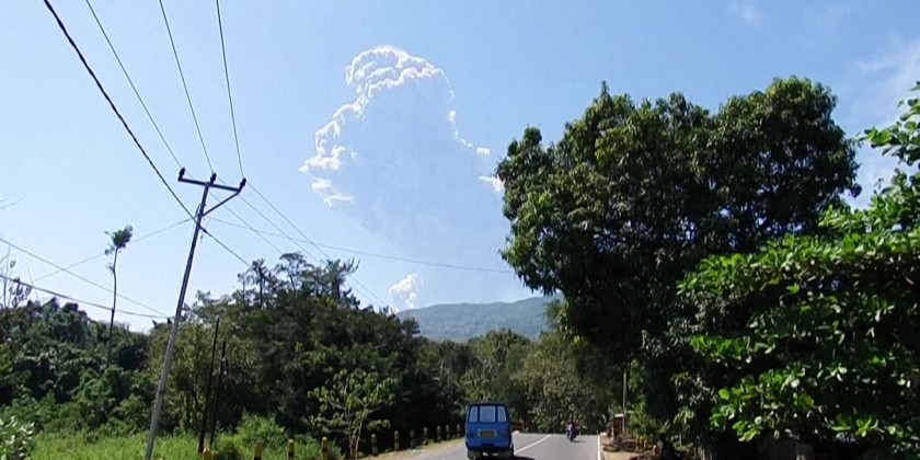 Mount Lewotobi Laki-laki, situated in the Indonesia, erupted on Monday morning, spewing a towering ash cloud 18 km high above its summit, the country's volcanology agency said. The eruption occurred at 11:05 a.m. local time, with thick gray to black clouds moving northward, northeastward, and northwestward from the crater, causing flight disruptions.