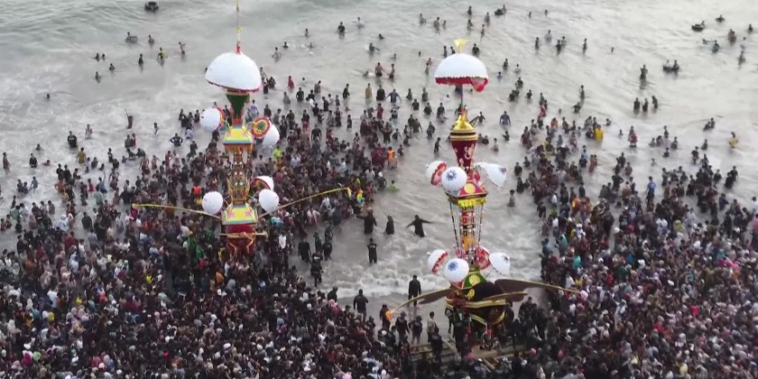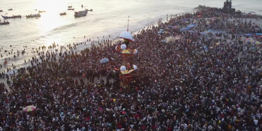 Thousands flocked to a coastal town in western Indonesia Sunday to watch a clash between ornate mythical effigies before they are cast into the sea, in a centuries-old ritual born from a Shiite holy day of mourning.