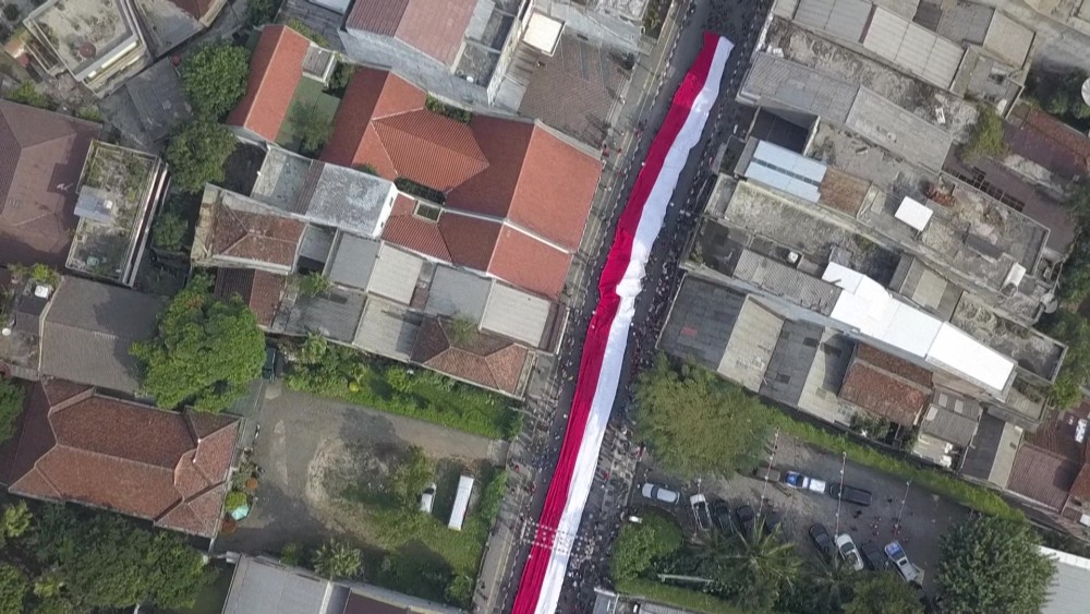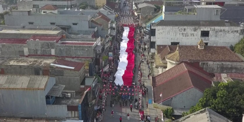Military officers and Civilians took part in a parade where a 100-meter-long flag was showcased in Bogor, in the West Java province, ahead of the upcoming Indonesia Independence Day. The Independence Day which falls on August 17 each year.