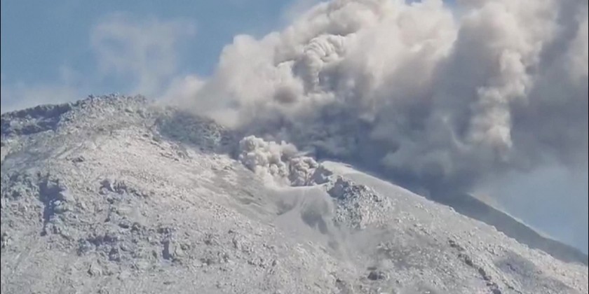 Mount Lewotobi Laki-laki in eastern Indonesia spews hot clouds up to one kilometre into the sky in a new eruption on Saturday afternoon.