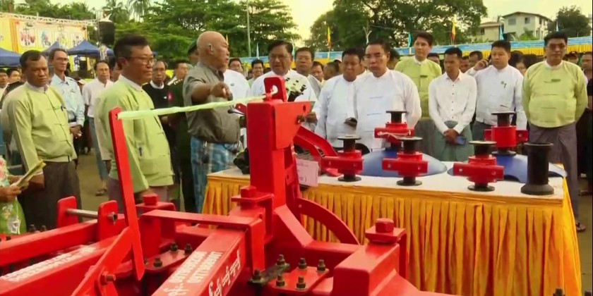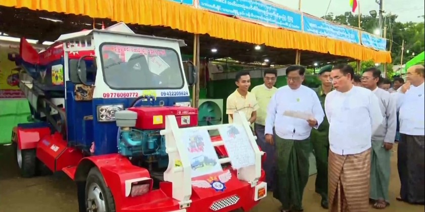In the evening, the Union Minister attended the opening ceremony of Agricultural Machinery Fair and Competition together with Chief Minister U Myo Swe Win, region ministers and officials.