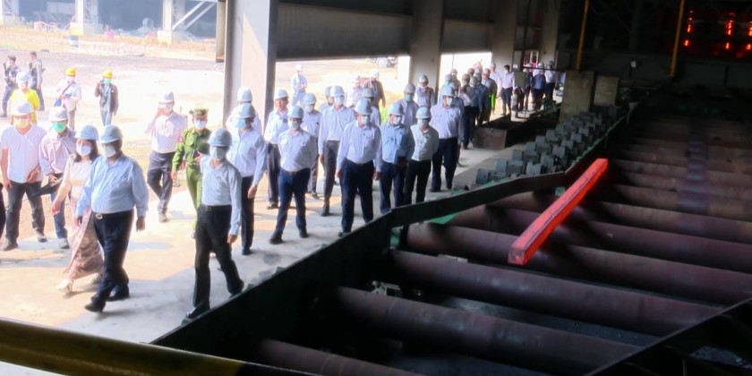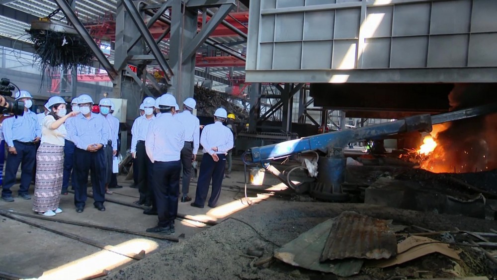 Union Minister for Industry Dr Charlie Than, together with the officials, visited Myanmar Mandalay Fu Xin Steel Mill in SintKai Township on Saturday. Officials reported on the operation process of the factory, issuance of factory registration and assistance for development of MSME industries.