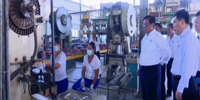 Union Minister for Industry Dr. Charlie Than visited the Home Utility Factory (Minsu) in Kyaukse Township on Tuesday.