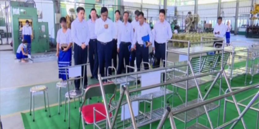 Then, the Union Minister gave necessary instructions on matters submitted by the officials and related production activities. Next, the Union Minister viewed round the products booths and production activities for the hospital-related materials production ordered by the Ministry of Health.
