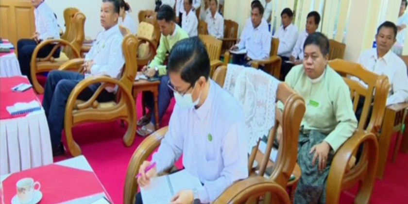 The factory manager and officials reported hospital-related materials production ordered by the Ministry of Health, and Director General from the Ministry Office explained rules and regulations for the governmental personnel.