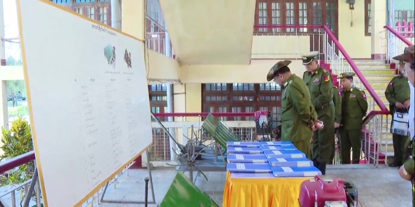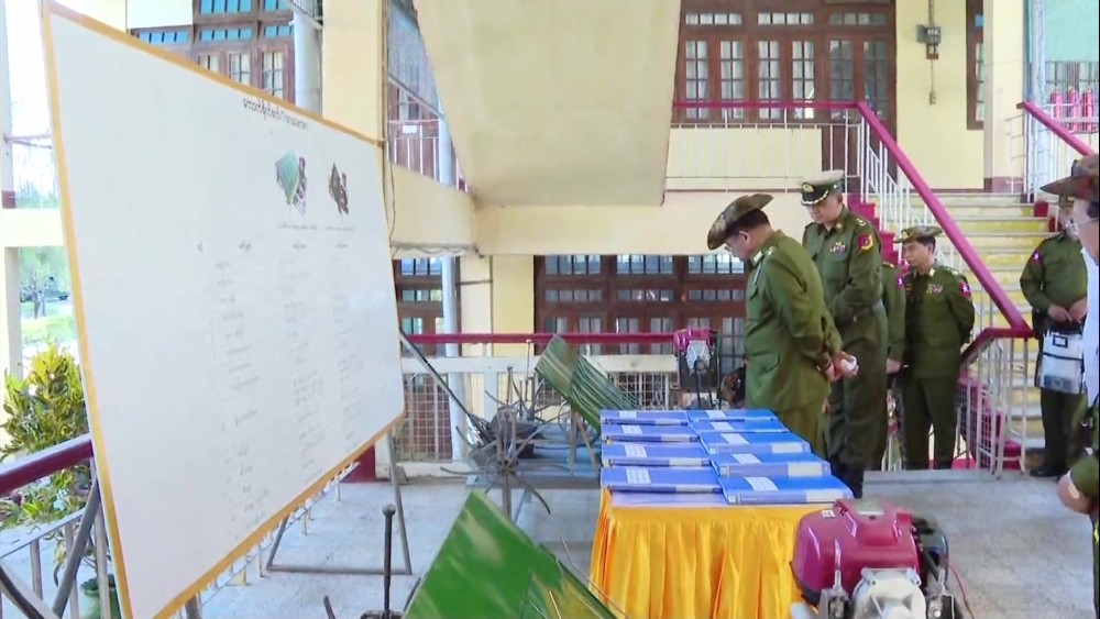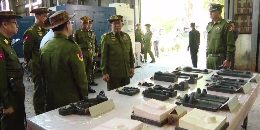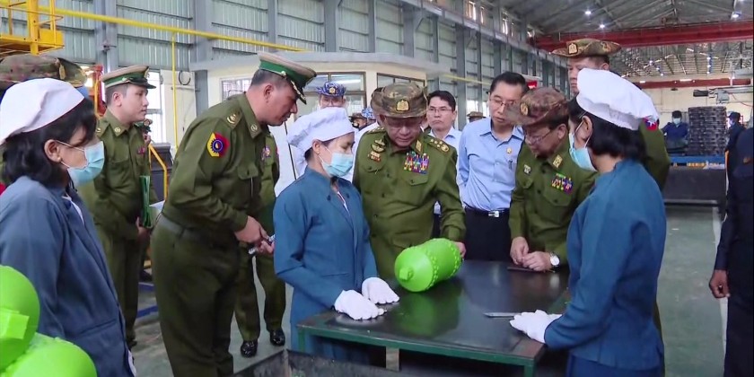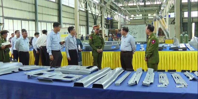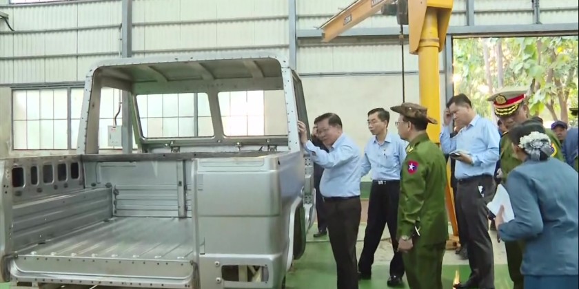 At the Tatmadaw Heavy Industries in Htonbo, the Senior General heard reports on work implementation of the factory and instructed for increased manufacturing with quality products. They then inspected the assembling process of vehicles.