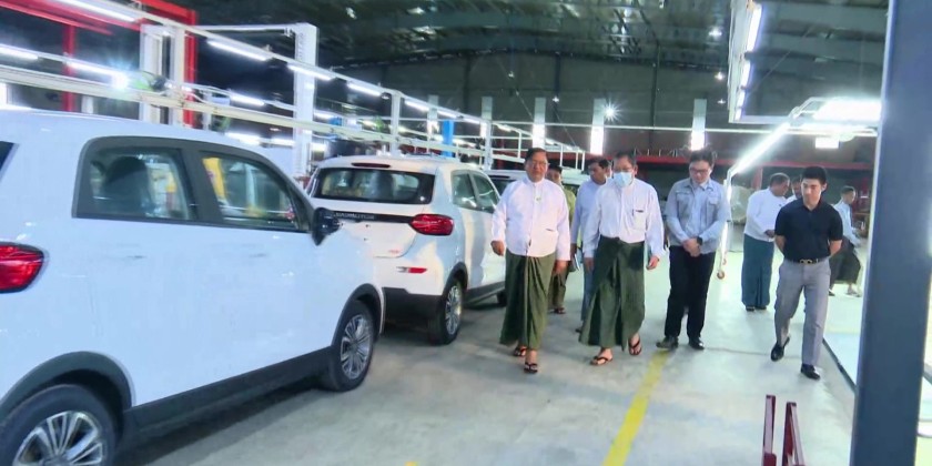 Later in the day, the Union Minister visited NPK Motor Co., Ltd. in Thanlyin and Super Seven Stars Automotive Co., Ltd. in South Dagon, which are assembling electric vehicles (EVs) under the SKD system. He inspected production processes and stressed the importance of meeting quality and safety standards in line with the national EV development policy.