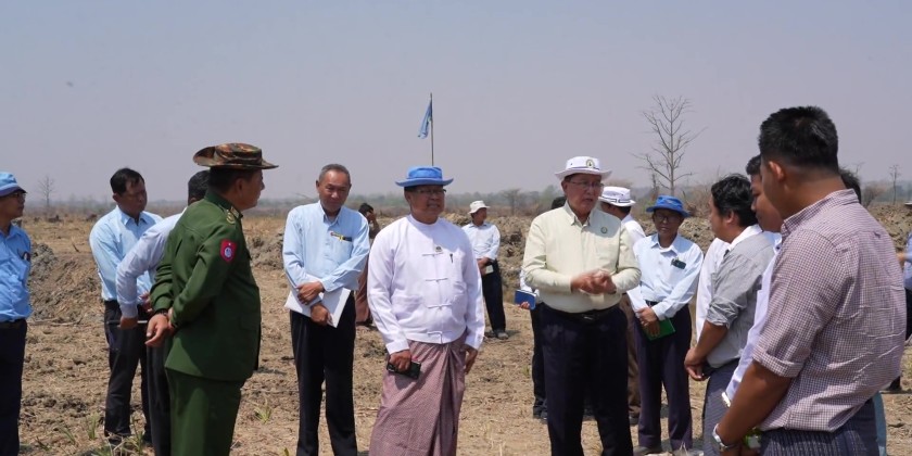 Subsequently, the Chief Minister provided necessary guidance. The Chief Minister, the Region Hluttaw Speaker, and responsible officials then inspected the ongoing implementation of the Magway Industrial Zone Project, including site cleaning, surveying activities, plot demarcation, road alignment works, and the completion status of internal roads within the industrial zone.