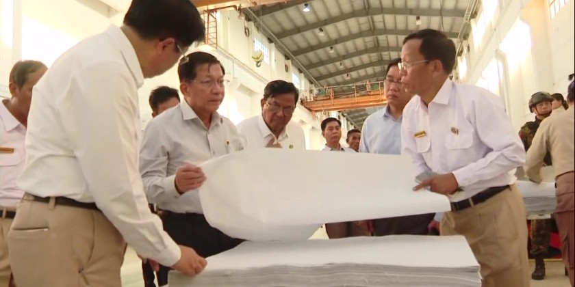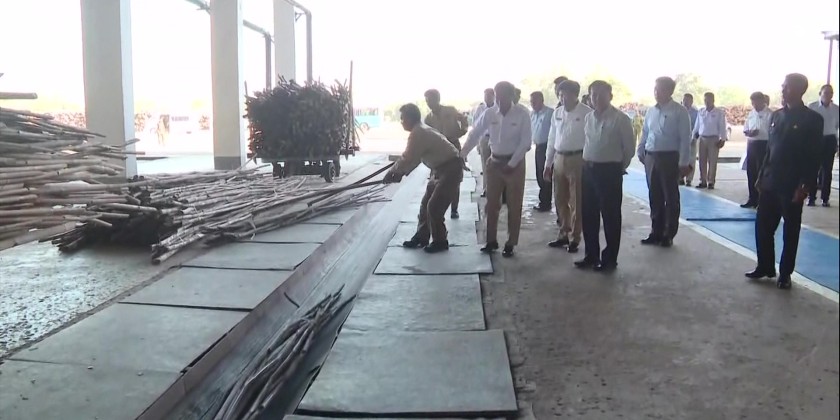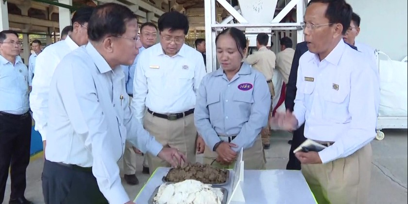 Officials provided update reports on the work undertakings at the mill and production condition. The Acting President instructed for successful manufacturing for import substitution, creating job opportunities for local community through forest and bamboo cultivation to support raw materials needed for the mill. Then, the Acting President viewed the operation process of the Pulp Mill, 50-ton Paper Mill and 60-ton Newsprint Paper Mill as well as the Fuel Pellet Plant.
