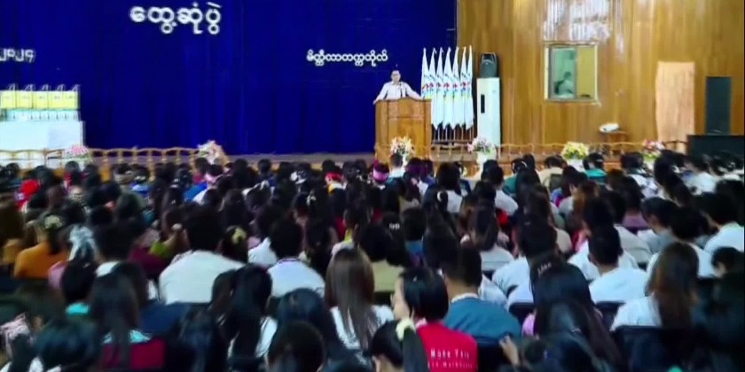 This was followed by lucky-draw program for the attendees including teachers, students, departmental personnel and local residents, and five sets of MRTV DTH satellites and 100 sets of DVB T2 Set Top Box were presented to the lucky winners. The discussion session was joined by a total of 710 students from 8 Universities / Degree Colleges and academic personnel from Meiktila University,Computer University,University of Technology,Myanmar Aerospace Engineering University,Meiktila University of Economics, Government Technological Institute (GTI), Education Degree College and Nursing training school and district/Township level departmental personnel and locals.