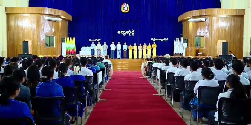 In the afternoon, the Union Minister proceeded to the Meiktila University and gave discussion titled “Preventing the Risk of Media Toxicity” and “Nation Building and the Role of Media” to students from Meiktila University and Degree Colleges at convocation hall.