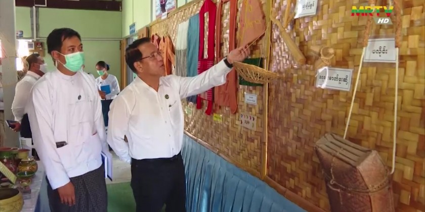 Later, the Union Minister viewed around the relay station and greeted the staff and presented cash assistance. At the Nayung Shwe Township IPRD office, the Union Minister and party looked into the display of mini-museum and wall publications as well as practicing of e-library system in the children’s reading room and library tasks.