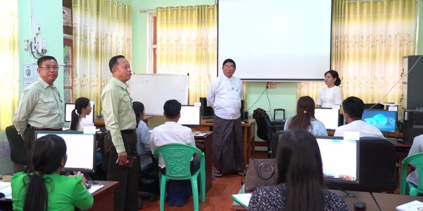 After that, U Than Swe Win. Secretary of Magway Region Government explained about the purpose and implementation for the course and the rector of the University of Computer Studies (Magway) Dr. Soe Lin Aung clarified the arrangement and procedures to be given in the training and Chief Minister U Tint Lwin presented the teaching aids for the course to the traninees.